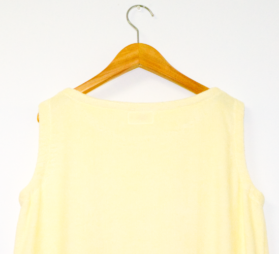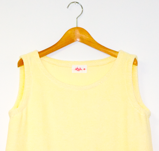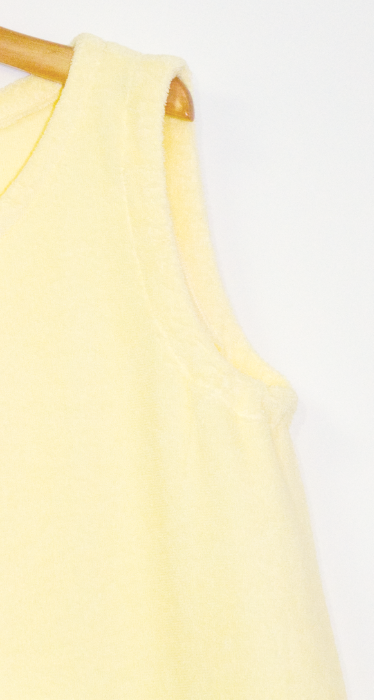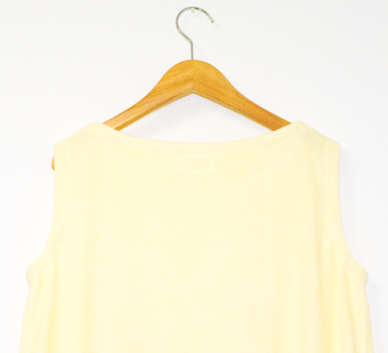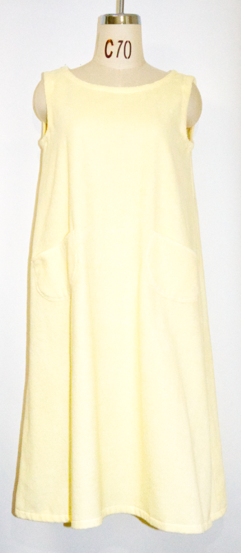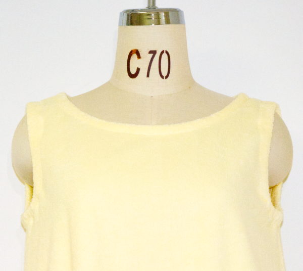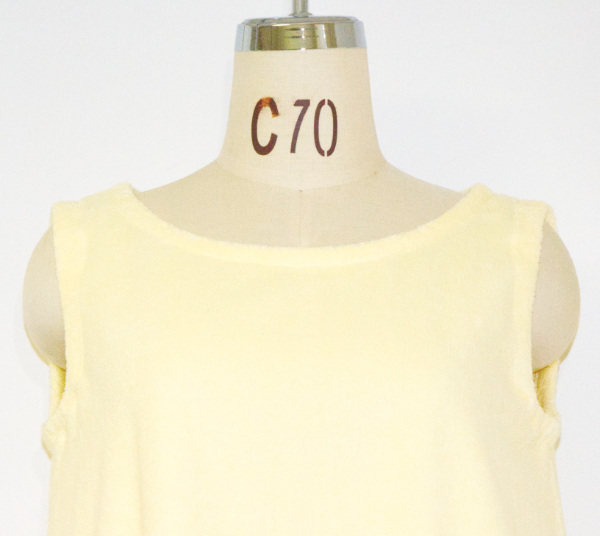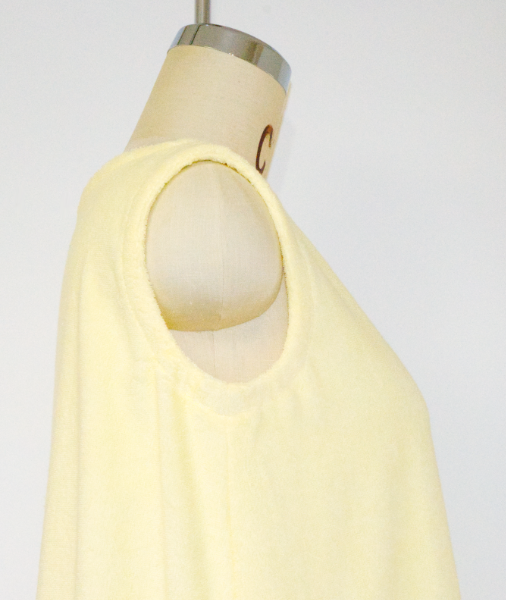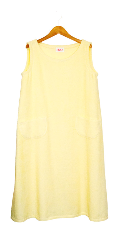 吸水性の高いタオル地でできたノースリーブワンピース。寝まき、部屋着用。暑い日は通気性がよく蒸し暑い夏に最適です。