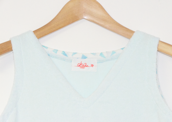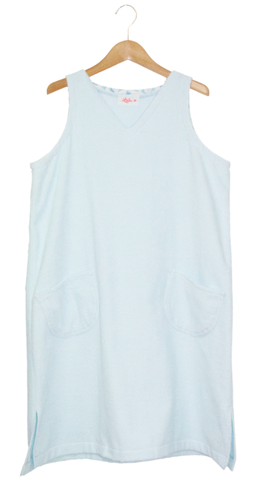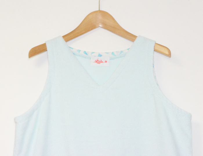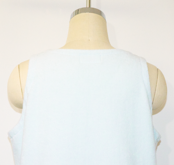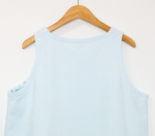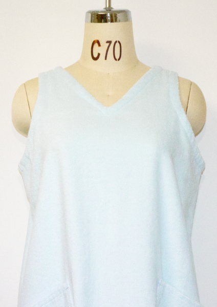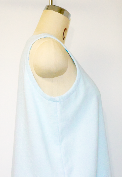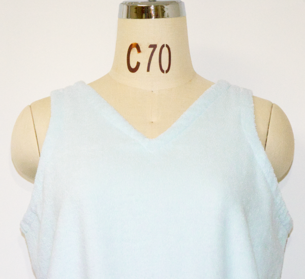 吸水性の高いタオル地でできたノースリーブワンピース。寝まき、部屋着用。暑い日は通気性がよく蒸し暑い夏に最適です。