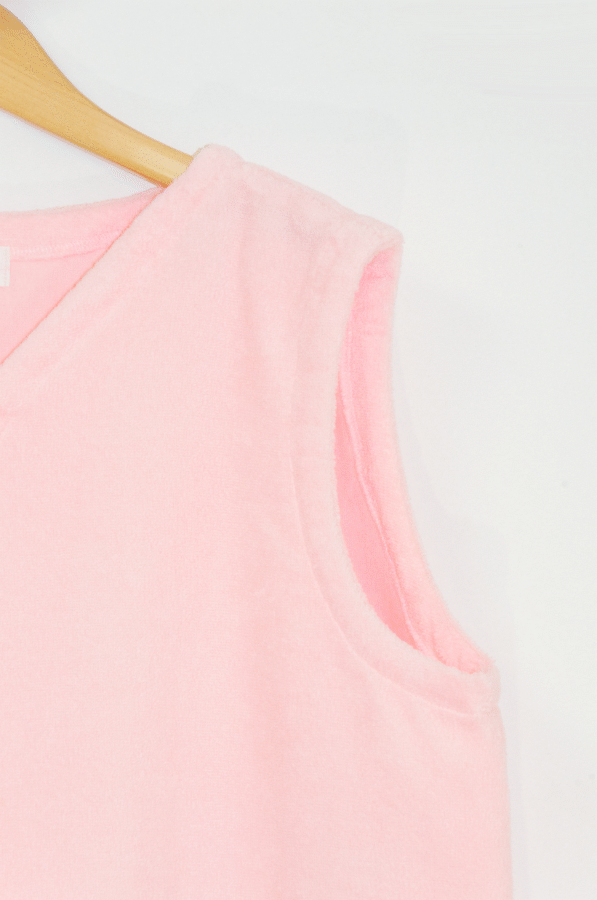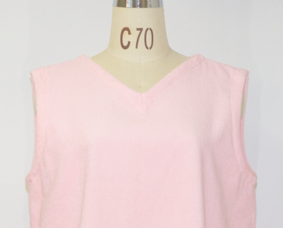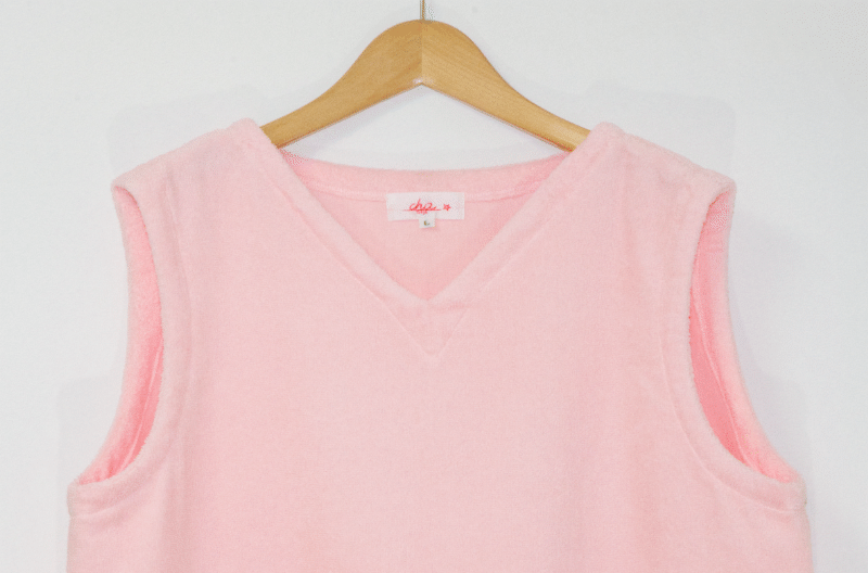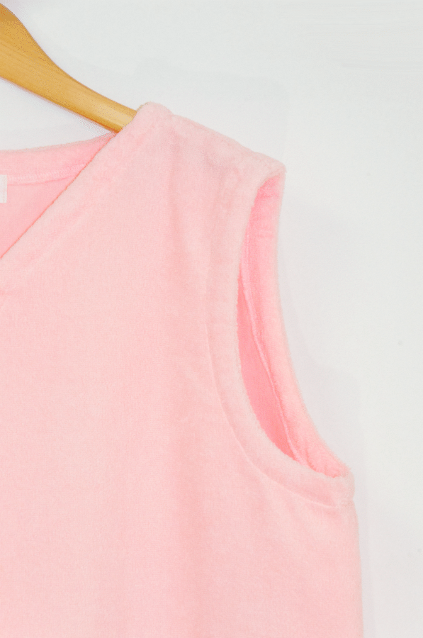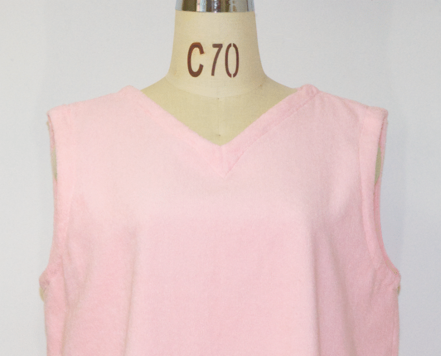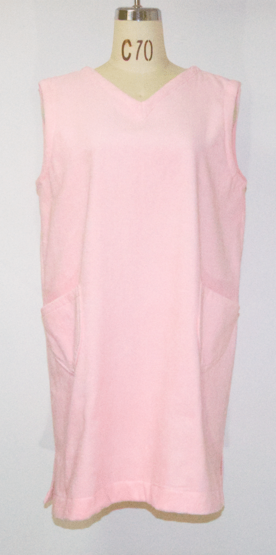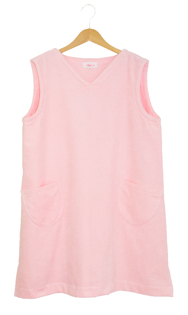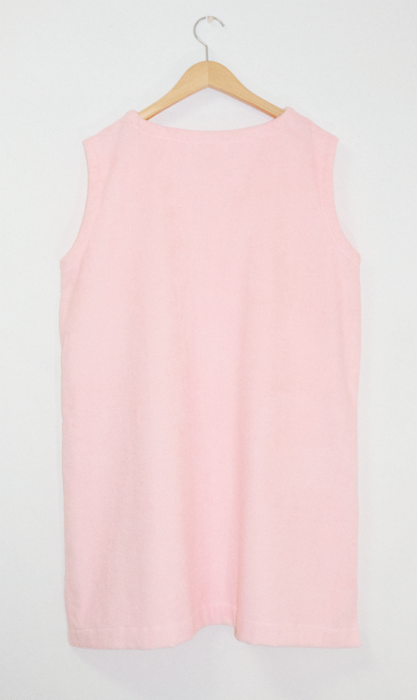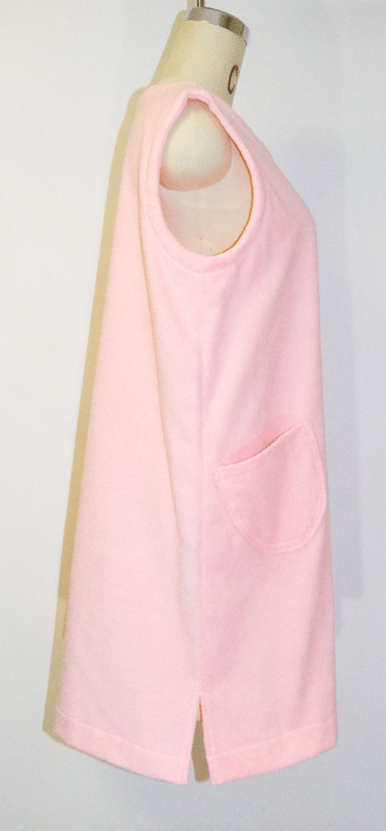吸水性の高いタオル地でできたノースリーブワンピース。寝巻き、部屋着用。暑い日は通気性がよく蒸し暑い夏に最適です。