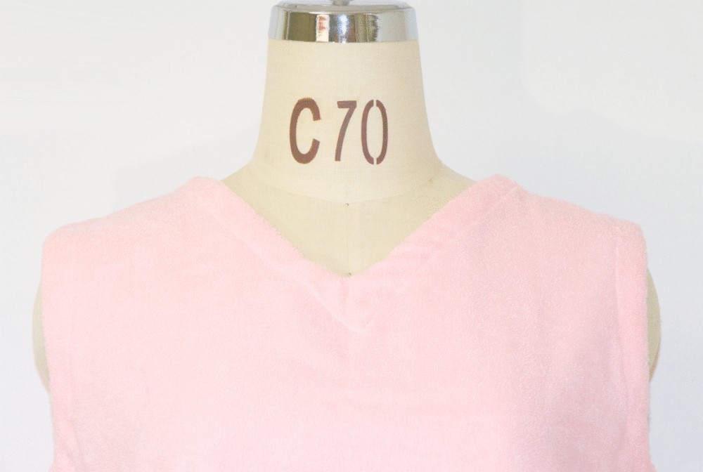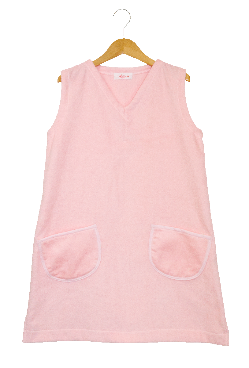 吸水性の高いタオル地でできたノースリーブワンピース。寝巻き、部屋着用。暑い日は通気性がよく蒸し暑い夏に最適です。