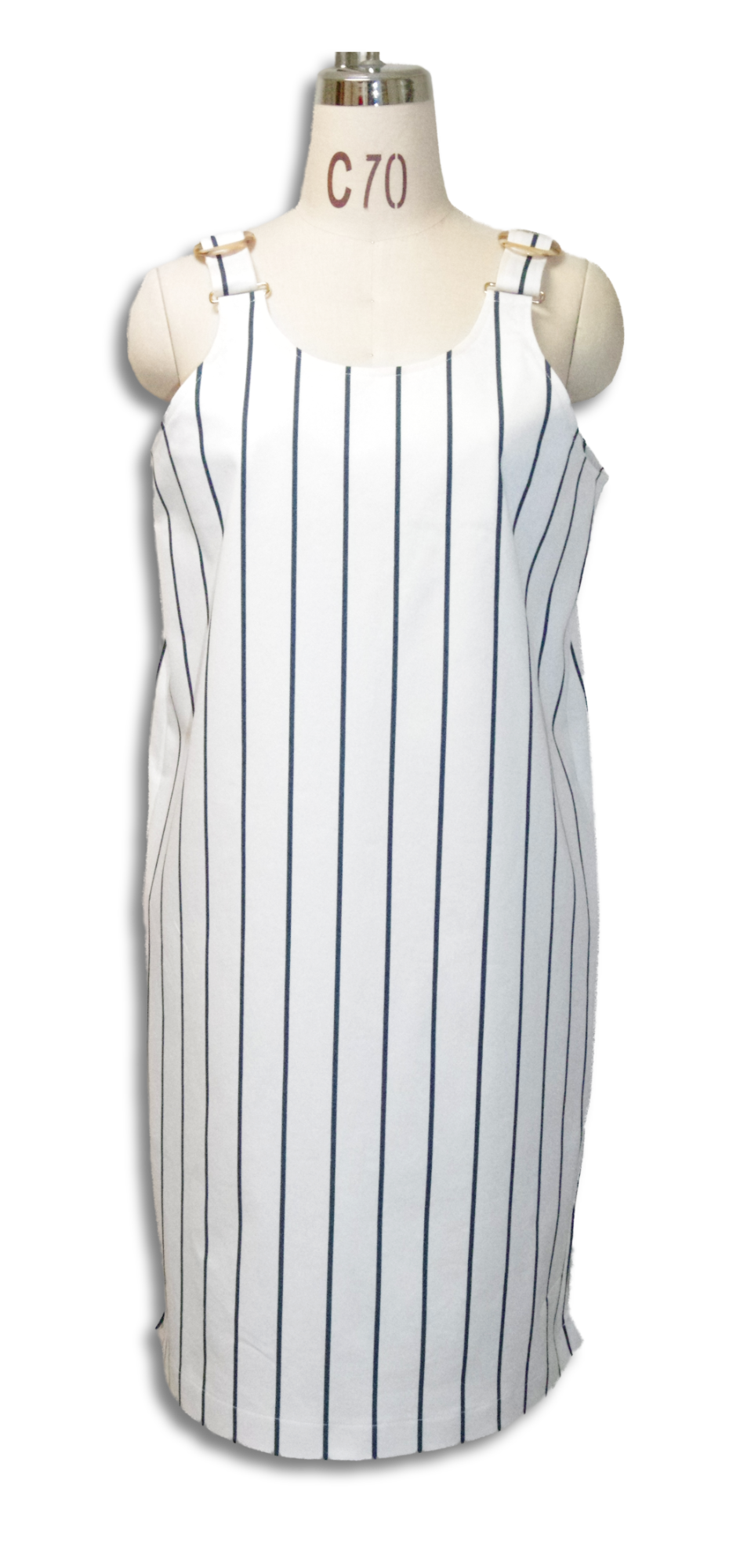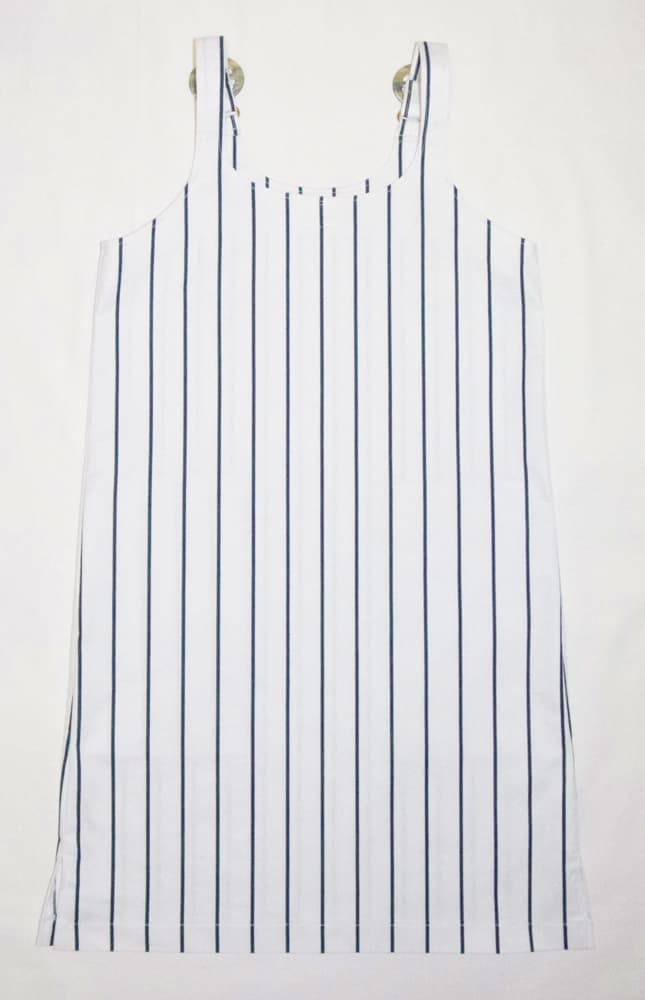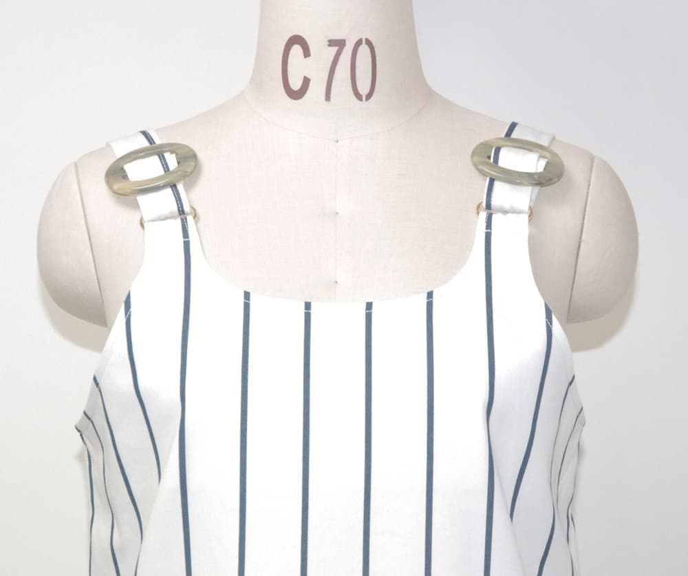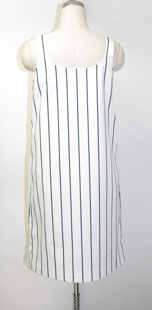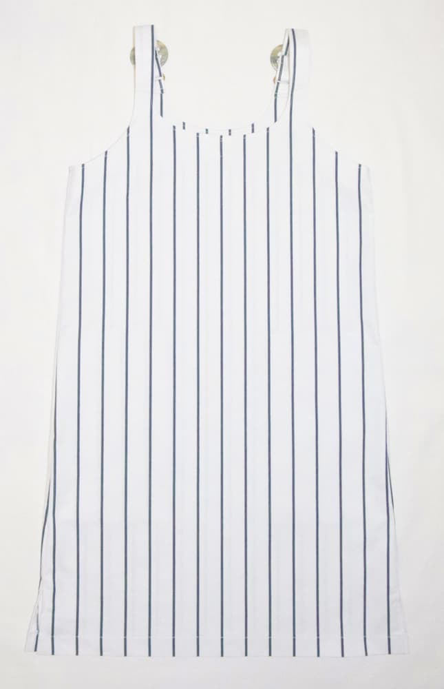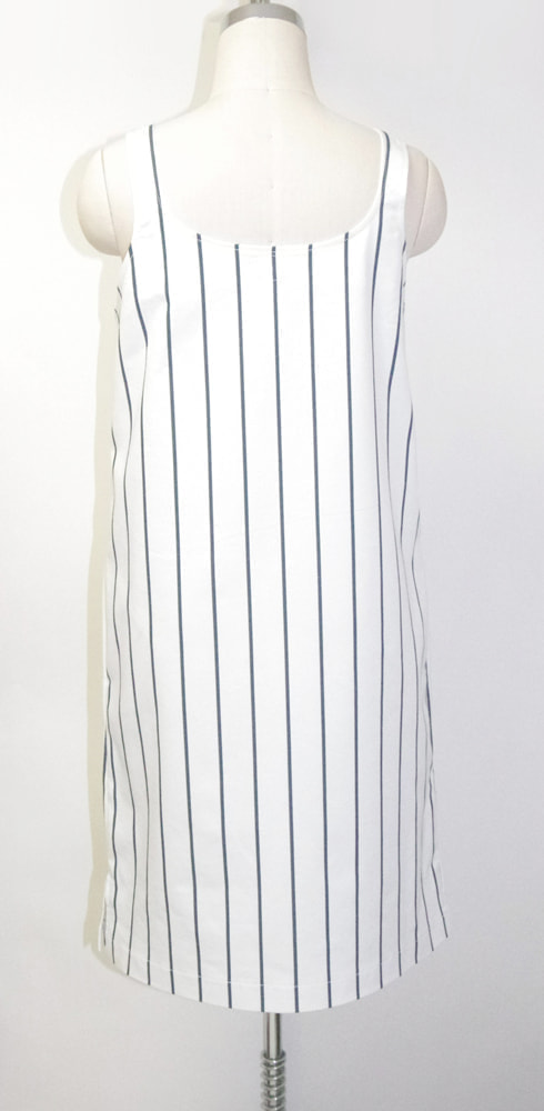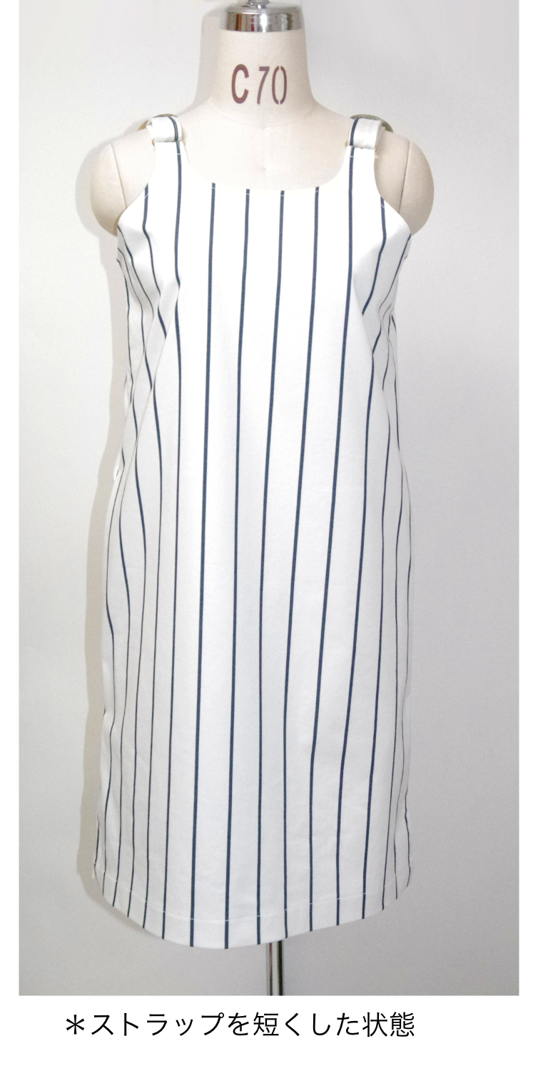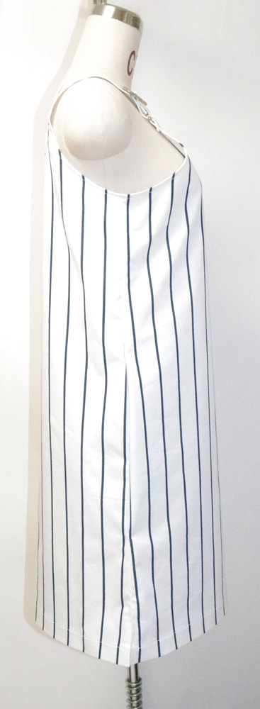 イタリア製のコットン100%、中厚生地。肩のストラップの長さを5~6センチ程度調節して、自分サイズに合わせてください。(アームホールと丈が変わります。)シンプルなコットン生地のワンピース。両サイドにポケットあり。