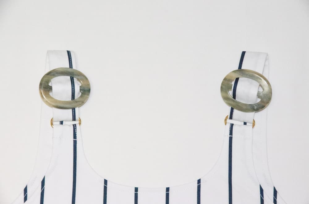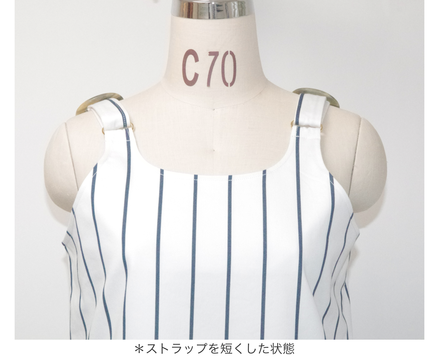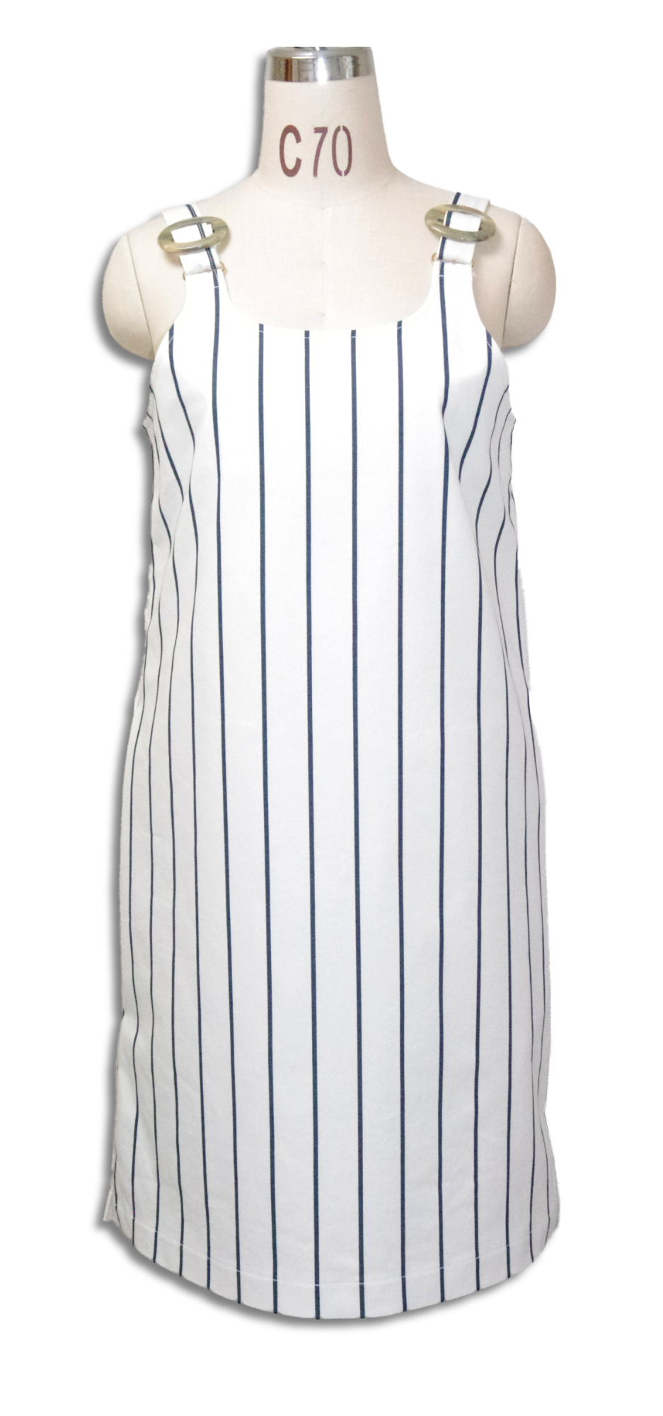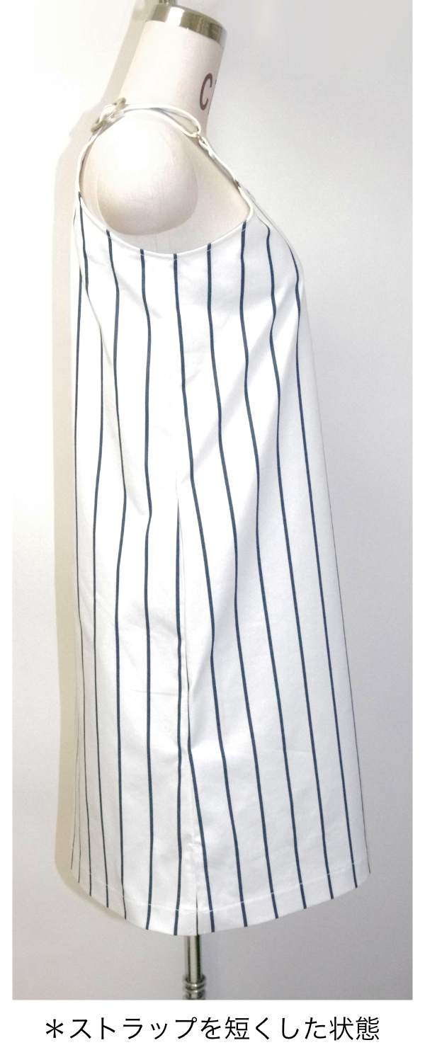 イタリア製のコットン100%、中厚生地。肩のストラップの長さを5~6センチ程度調節して、自分サイズに合わせてください。(アームホールと丈が変わります。)シンプルなコットン生地のワンピース。両サイドにポケットあり。