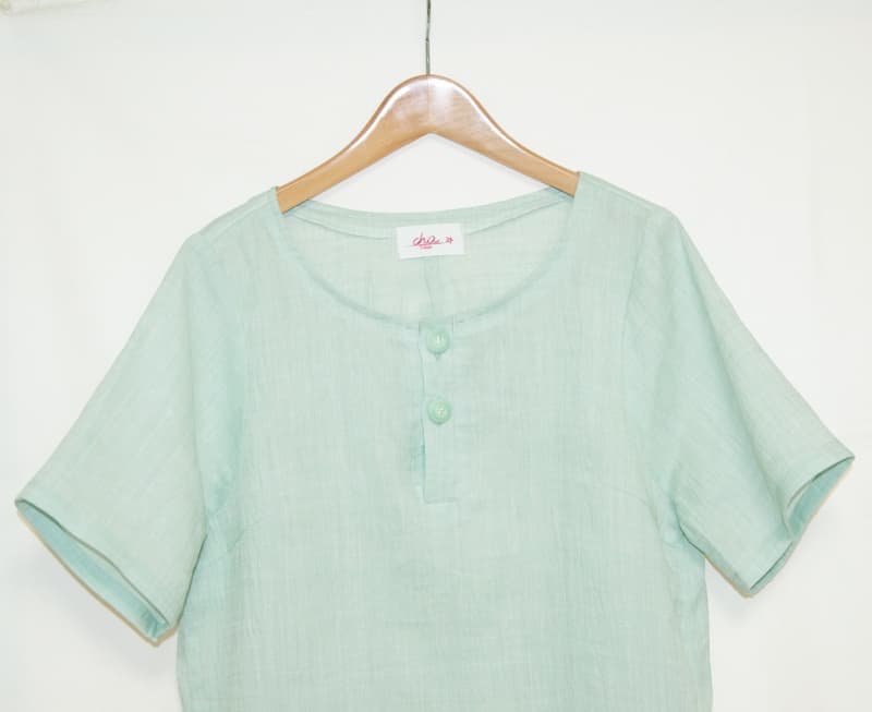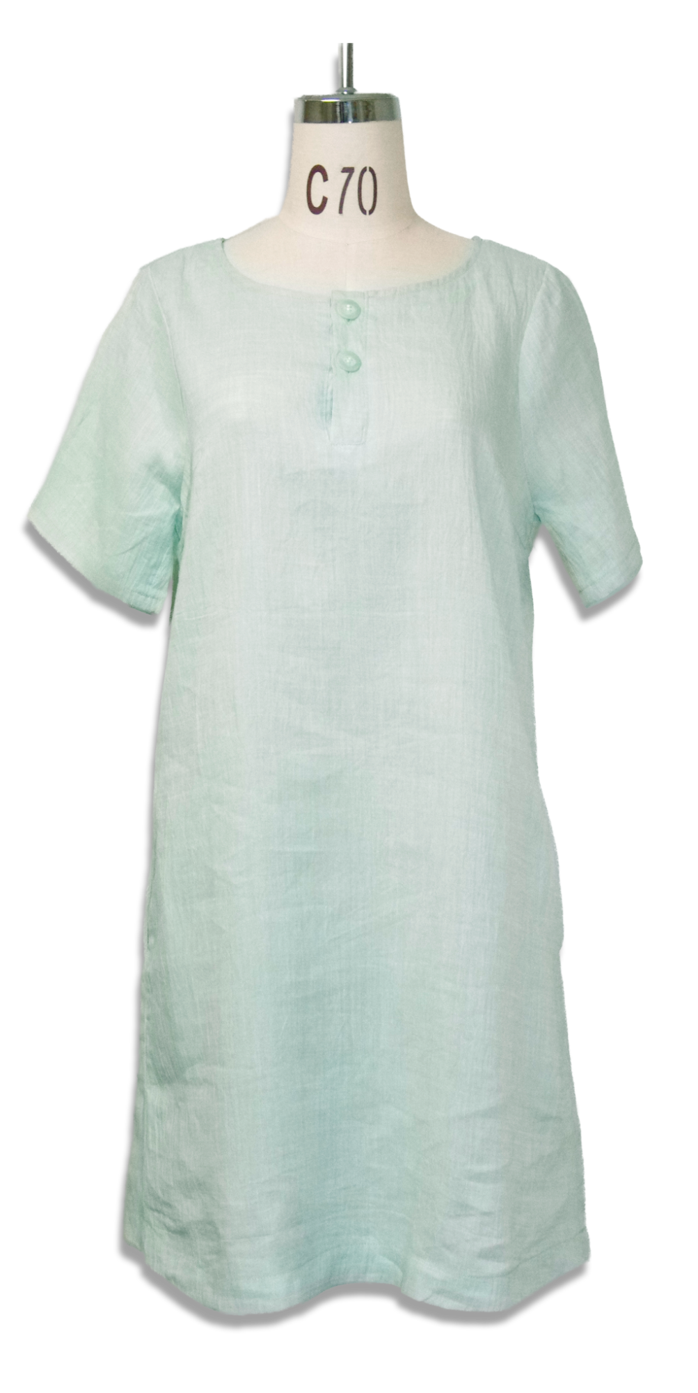 暑い夏にあっさり肌触りの麻の半袖ワンピース。