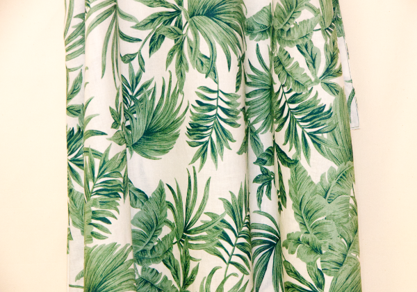 薄手の麻の生地。デザインは涼しいグリーン系植物柄。