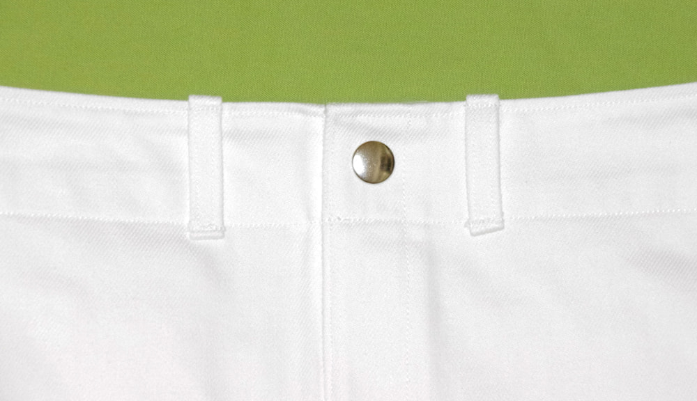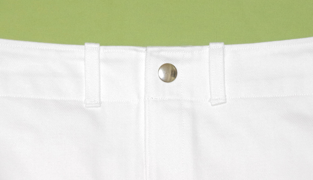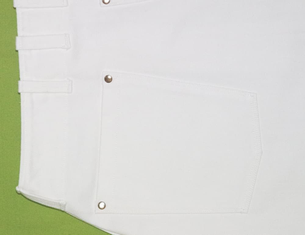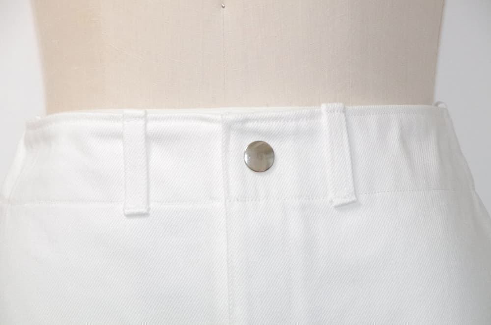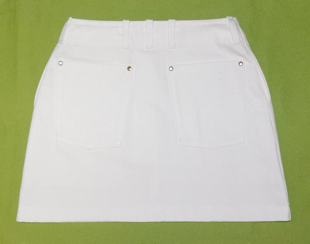 しっかりした中厚生地で作られた白のデニムミニスカート