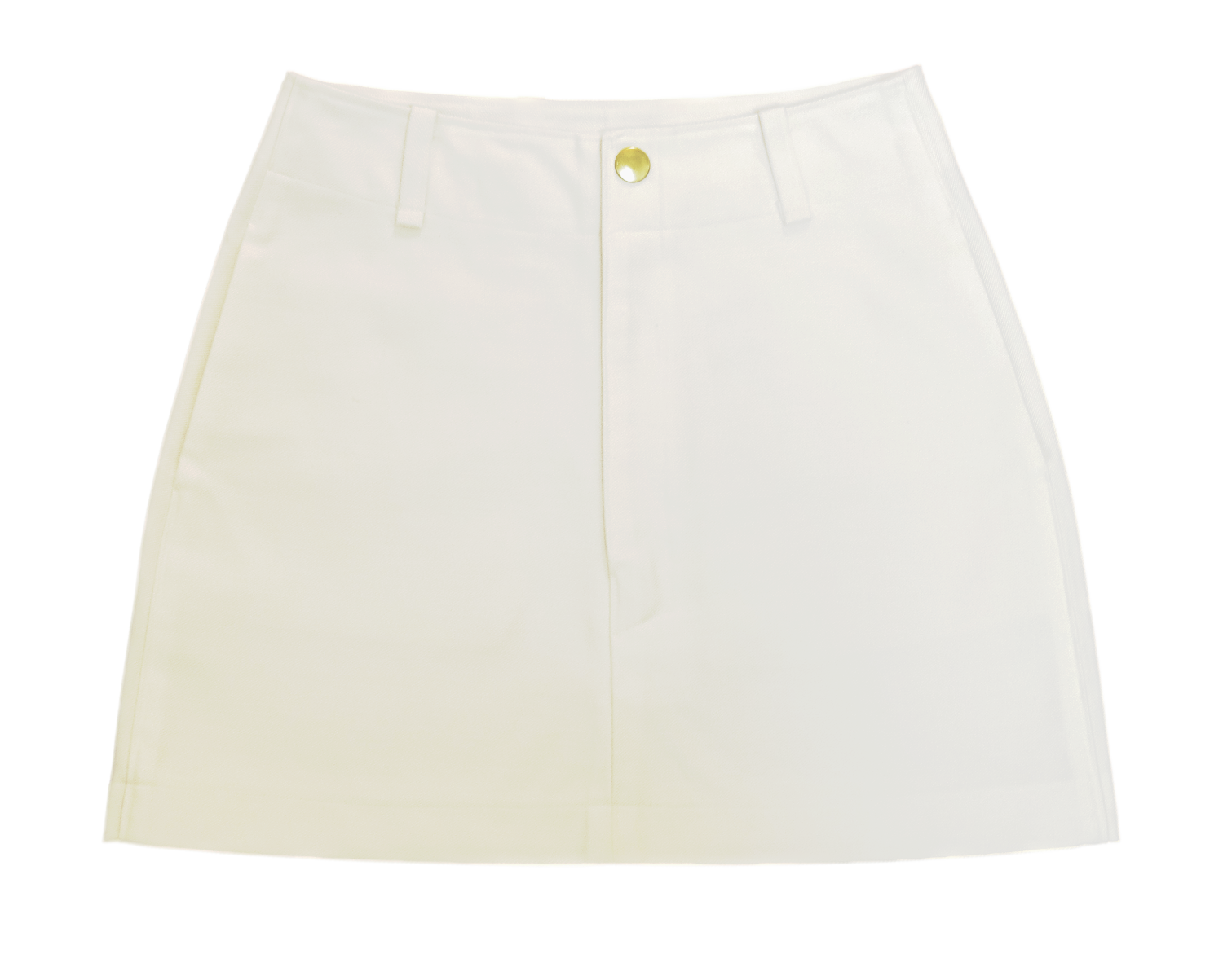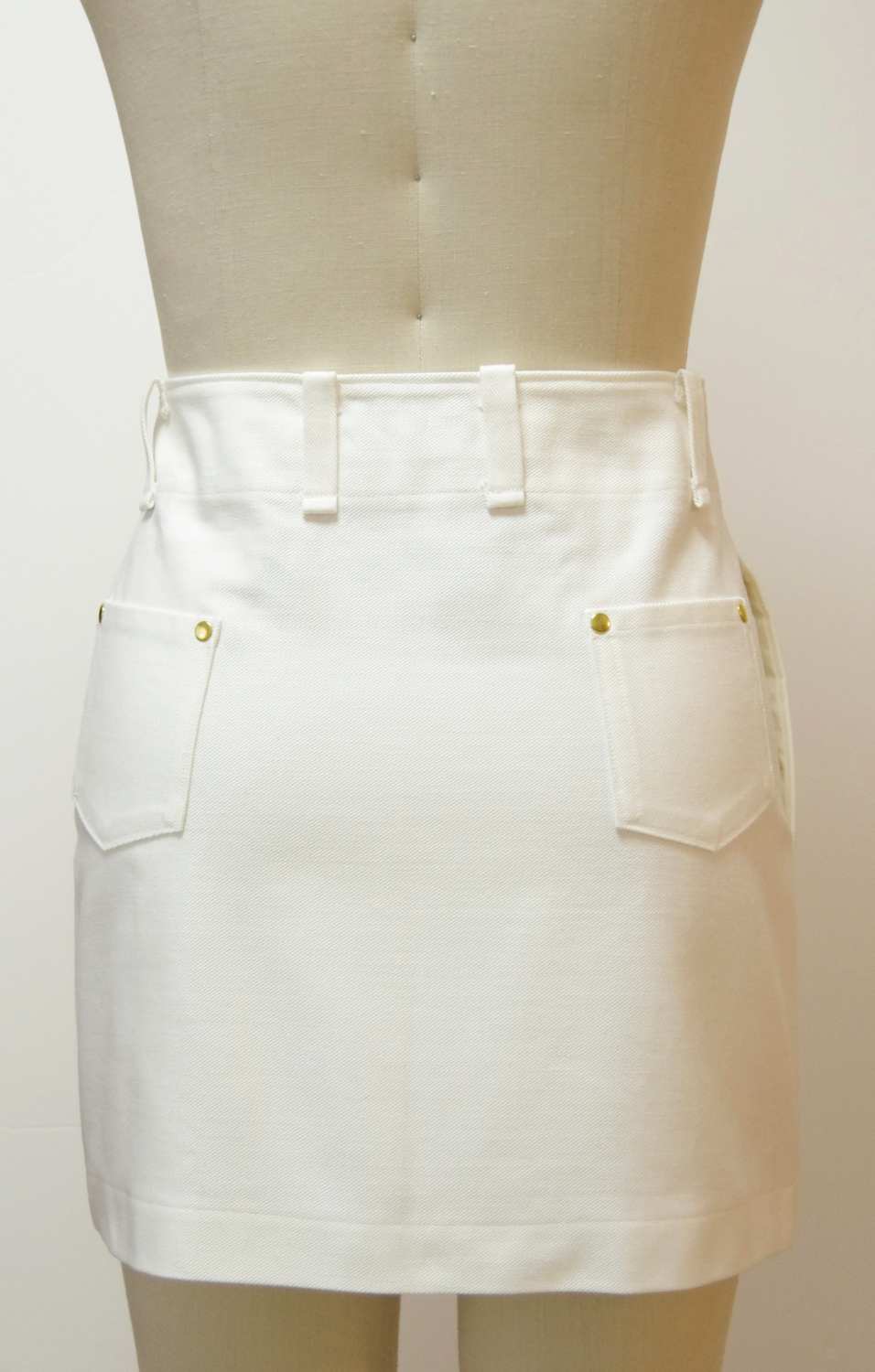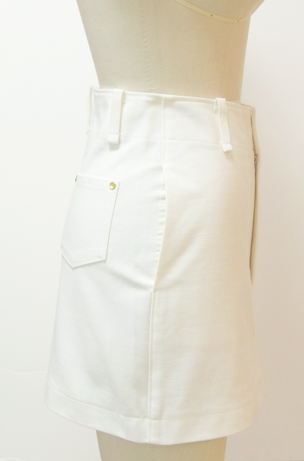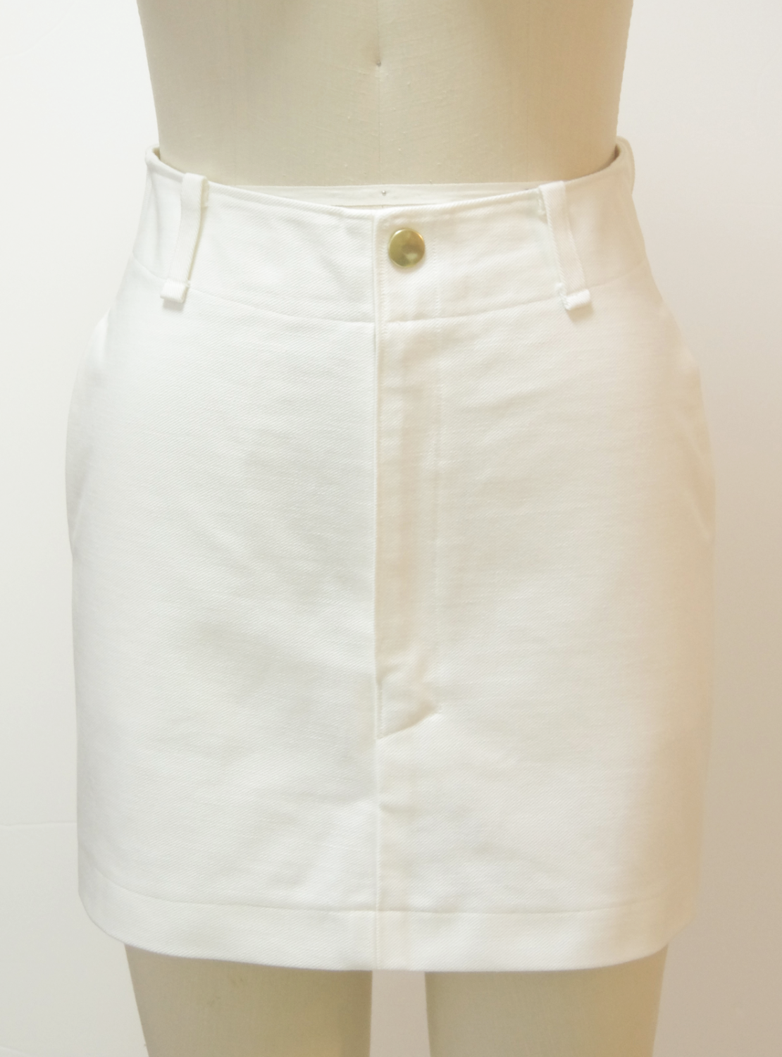 中厚ストレッチ生地のデニムの白のミニスカート。