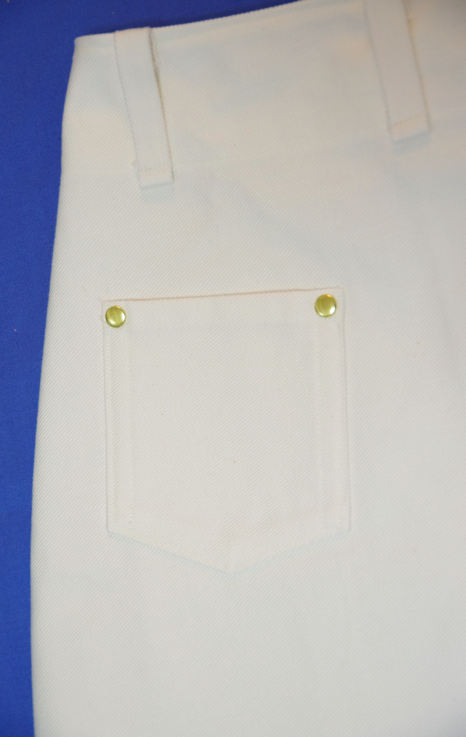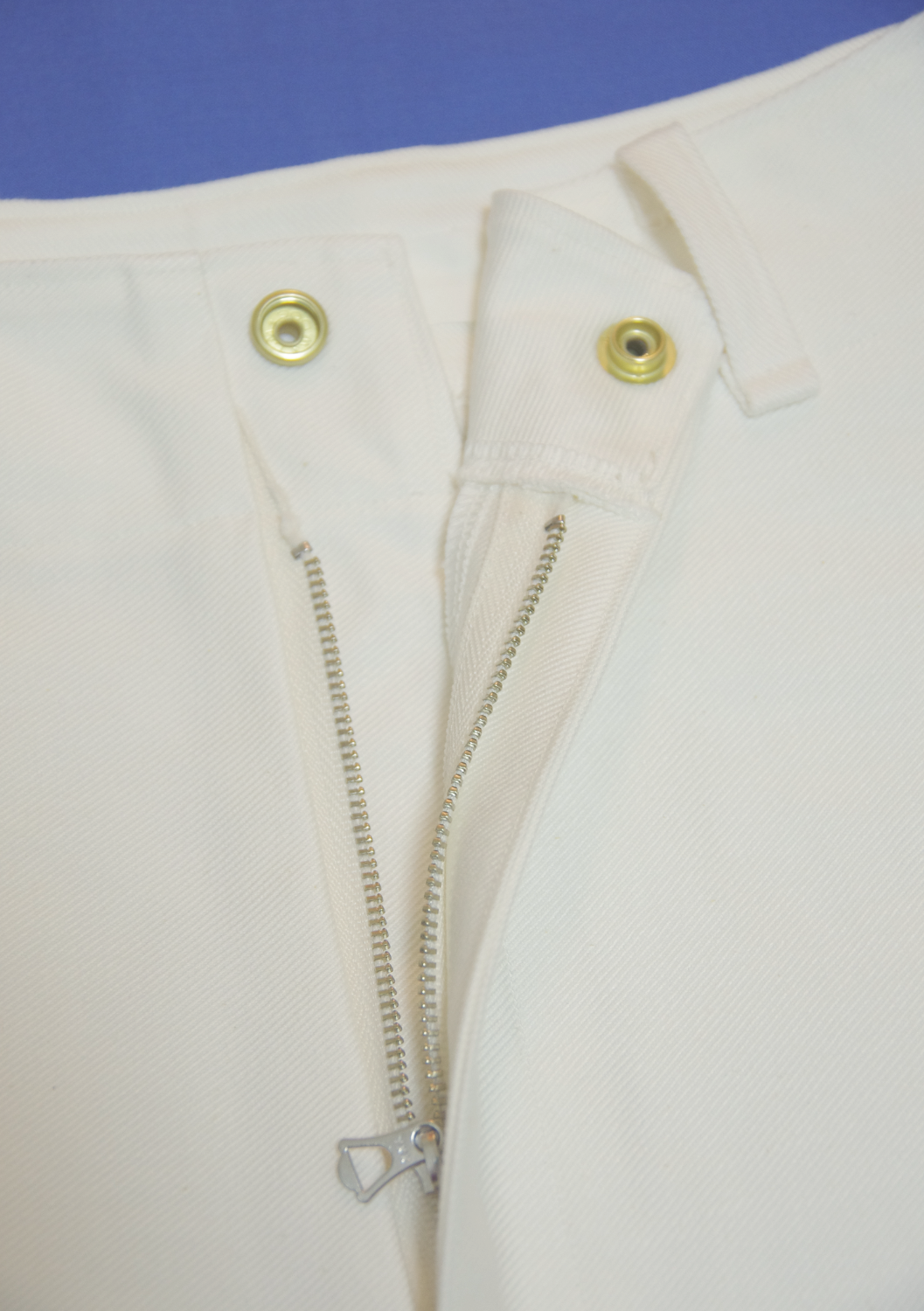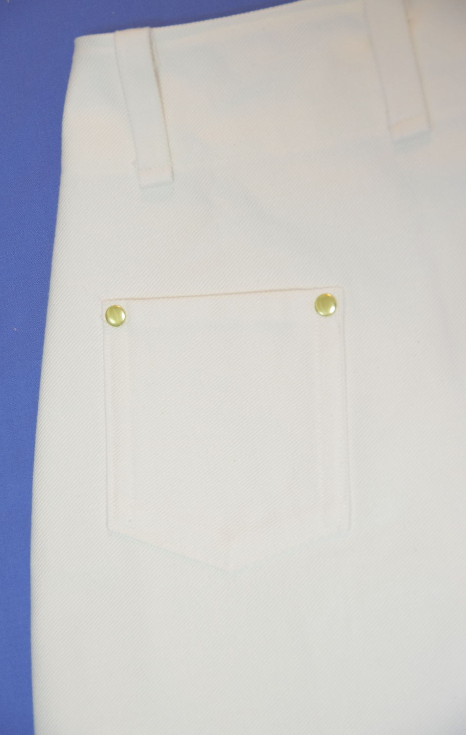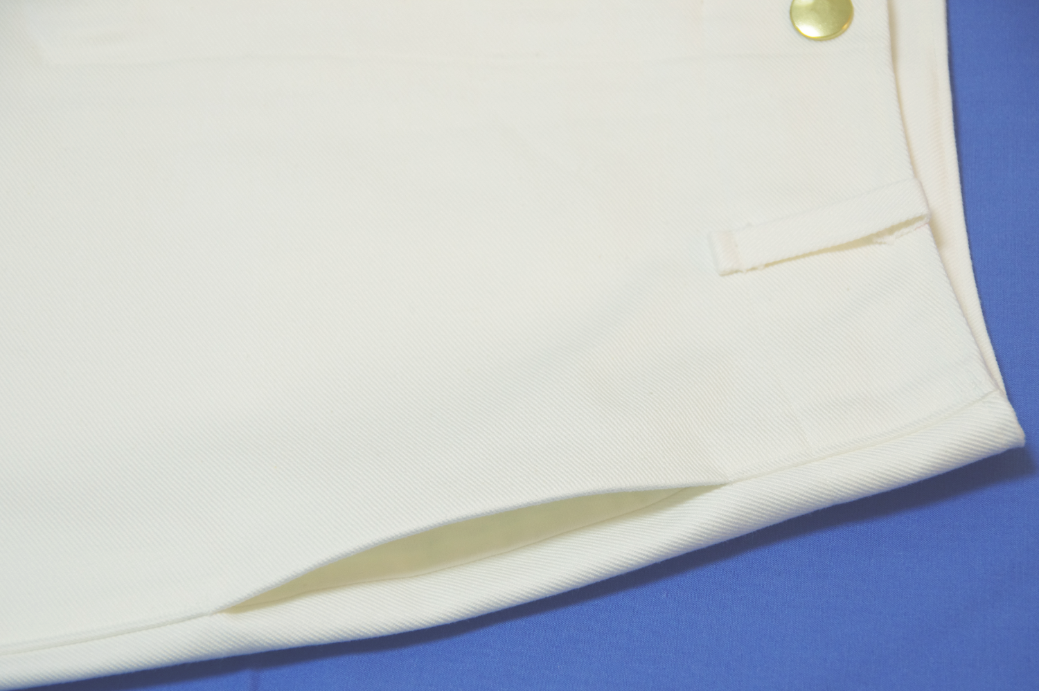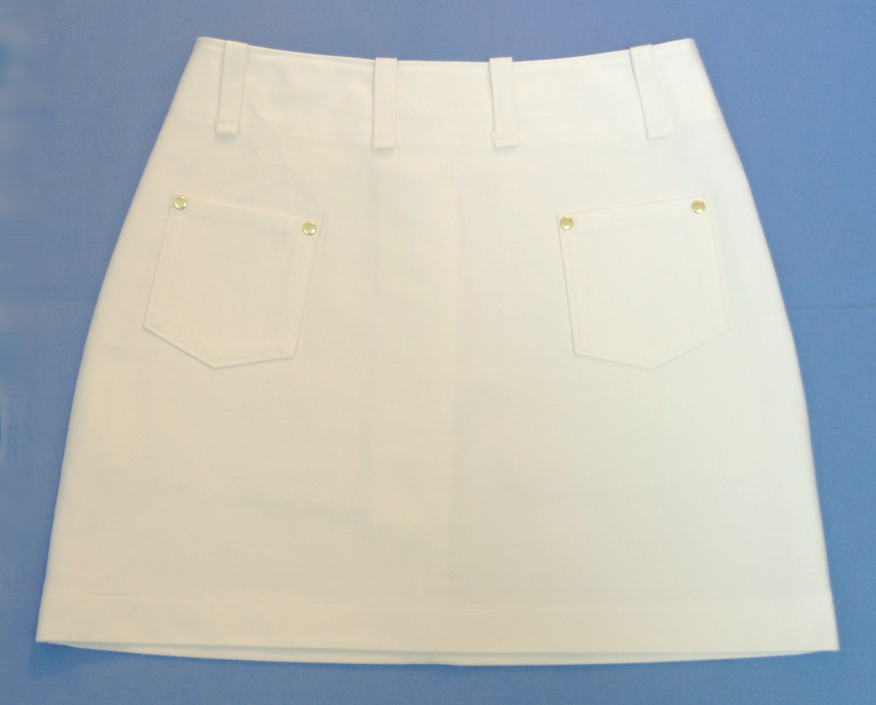 中厚ストレッチ生地のデニムの白のミニスカート。