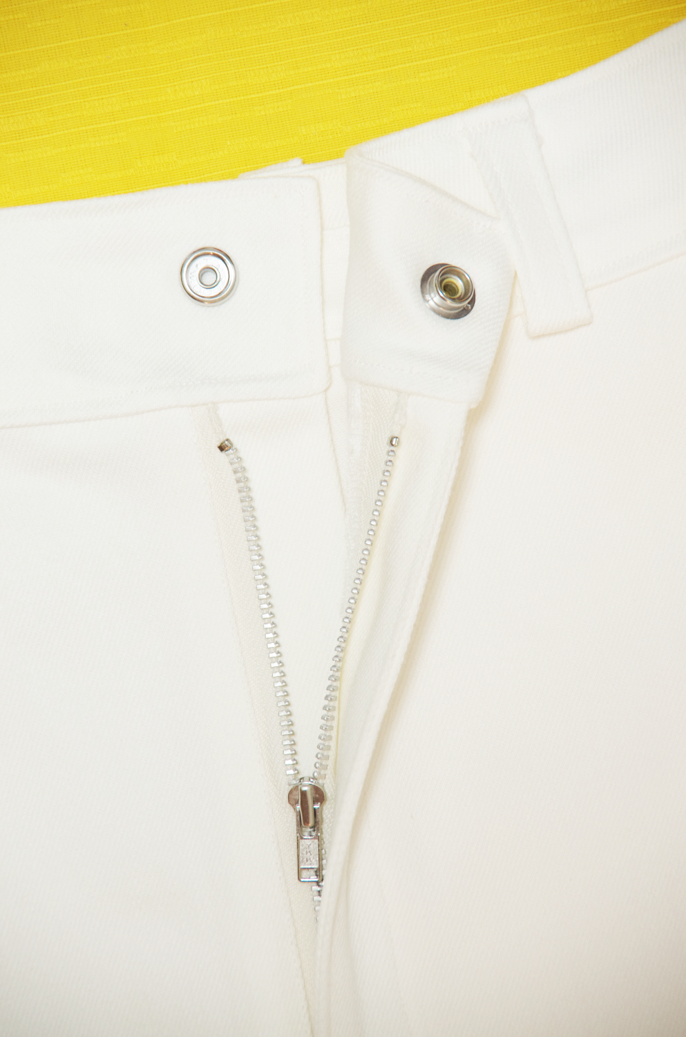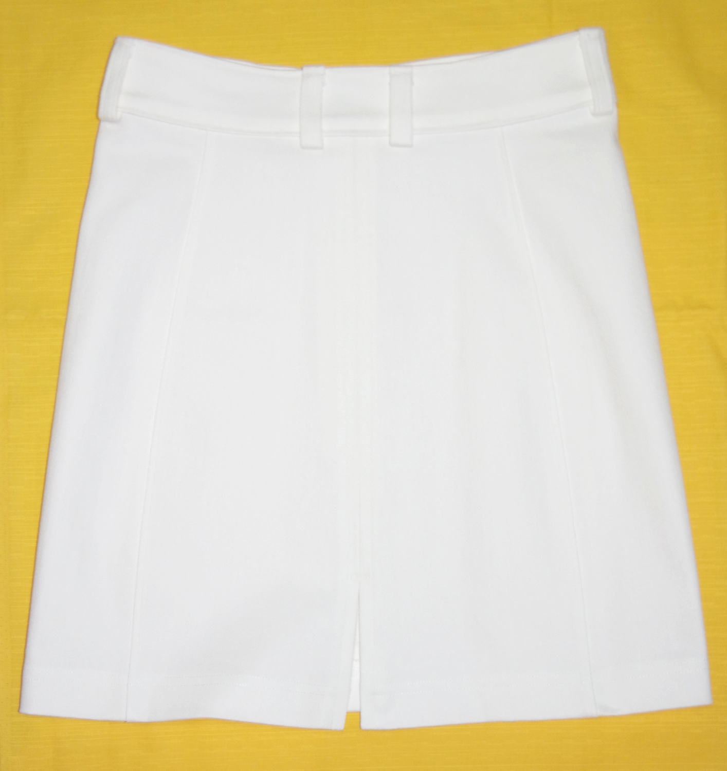 白のストレッチデニムミニスカート。