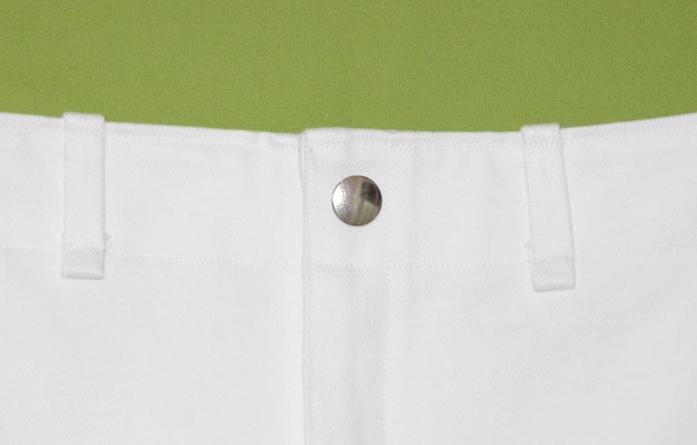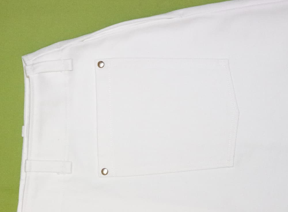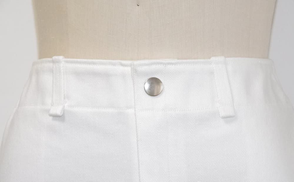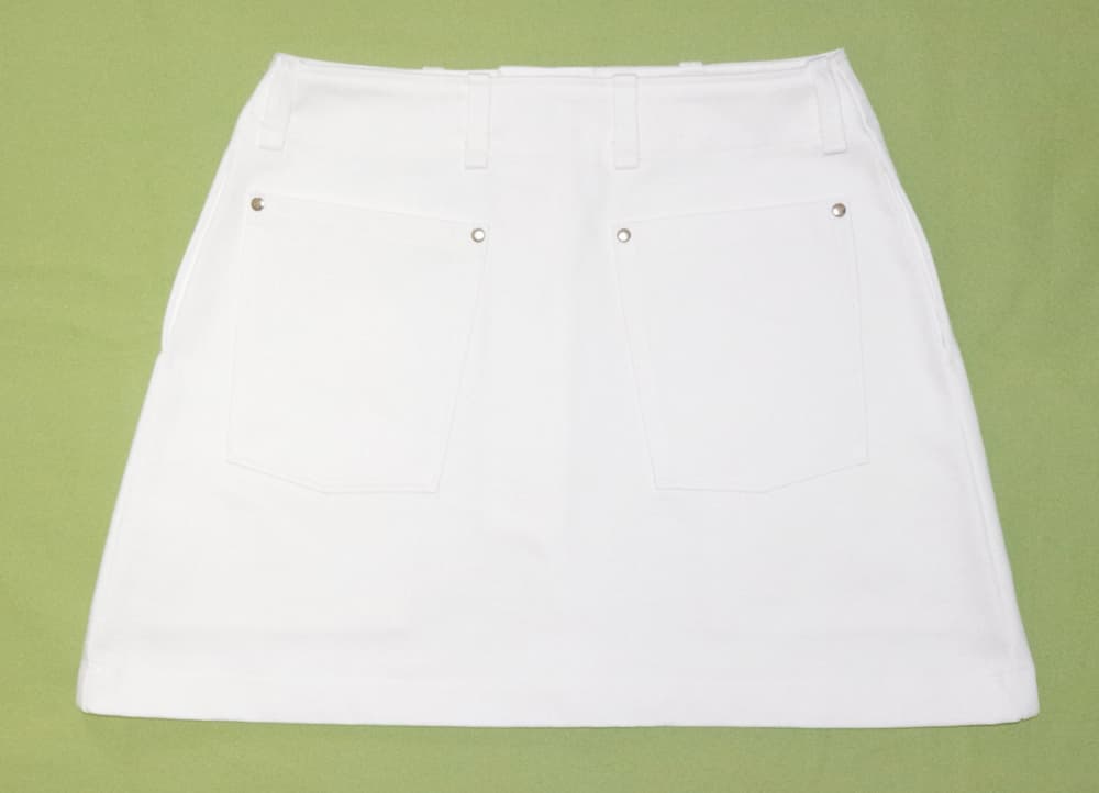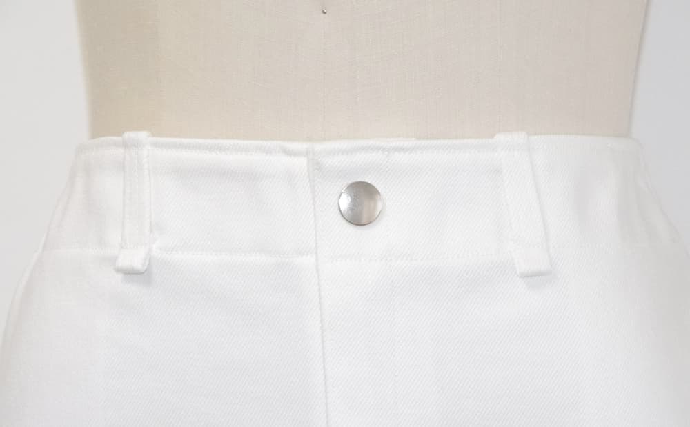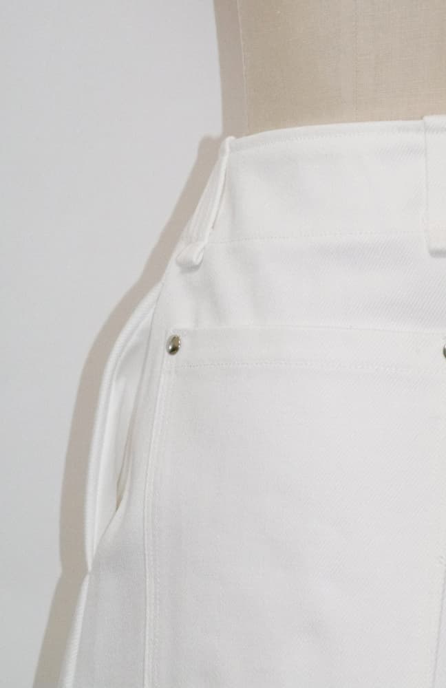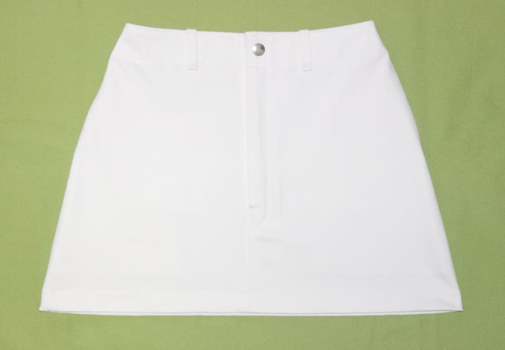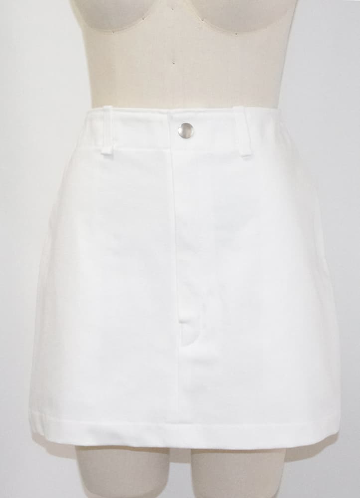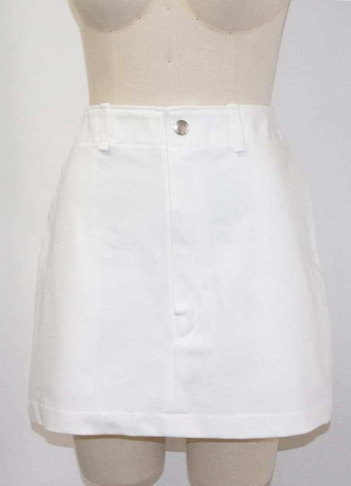 しっかりした中厚生地で作られた白のデニムミニスカート
