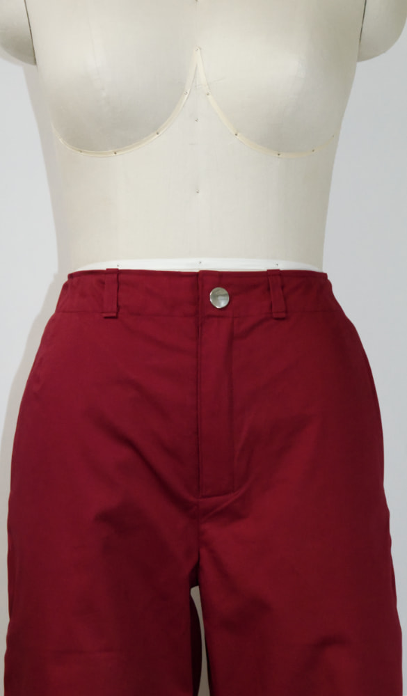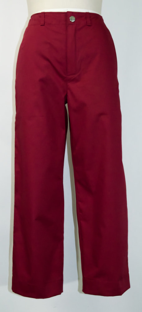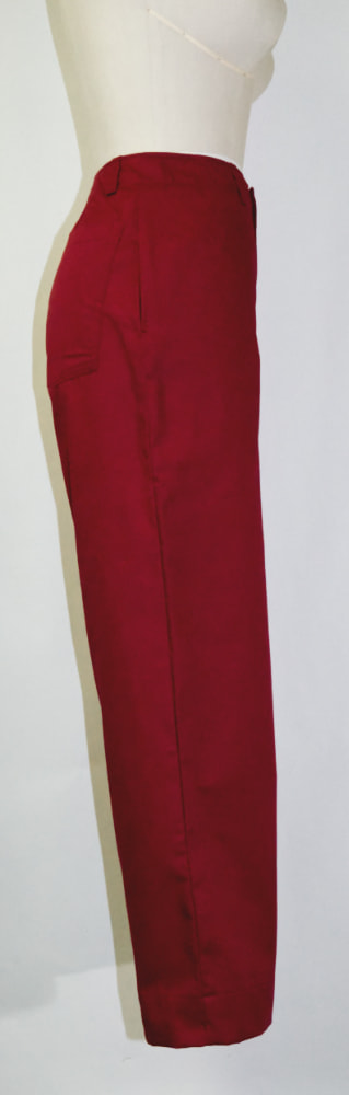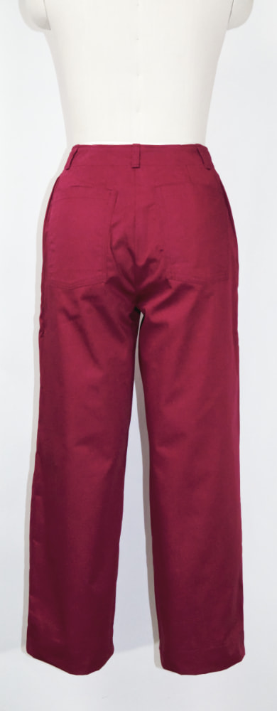 春夏物の薄手のコットンパンツ。コーマバーバリー生地で綿100%。幅広でもスキニーでもないスタンダードサイズ。